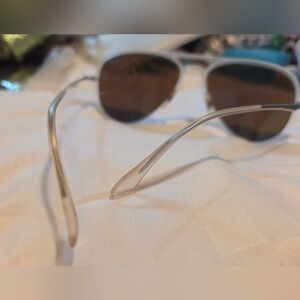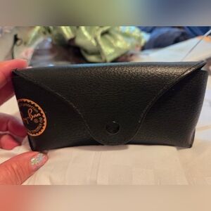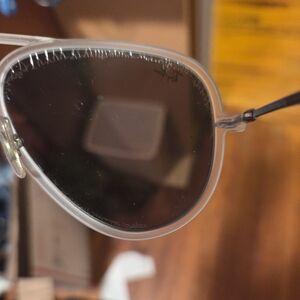 These are RB4211 646/55 56 D17 sunglasses with case. They are in used condition with some light scratching and bubbling on lens from use.