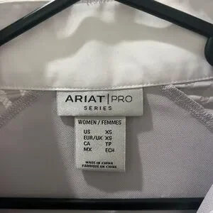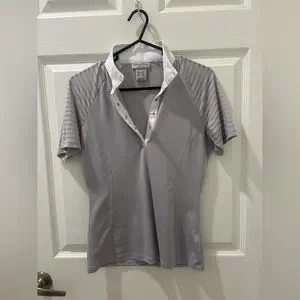 Stylish Ariat polo shirt in gray. Features a white collar and button placket. Perfect for casual wear.