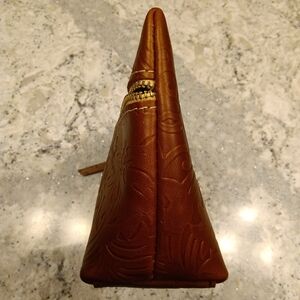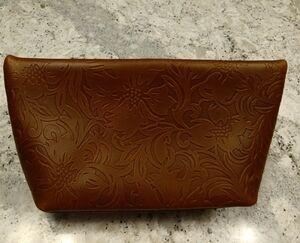 Portland Leather Floral Embossed Tan Cosmetic Case