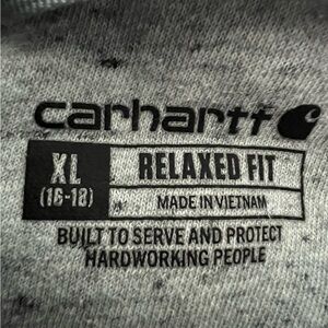 Experience the perfect blend of comfort and style with the Carhartt Gray Sweatshirt. Crafted from a soft cotton blend, this sweatshirt features a classic crew neckline and ribbed cuffs, making it ideal for casual wear. Its versatile heather gray color ensures it pairs effortlessly with any outfit, while the durable construction promises long-lasting wear. Size X-LARGE 16/18