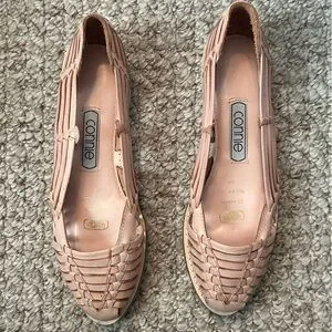 Experience the elegance of Connie's dusty pink woven leather flats, featuring a sophisticated basket-weave design and a comfortable slip-on style. These flats combine artisanal craftsmanship with a casual yet refined look, making them perfect for any occasion. The soft leather and intricate pattern ensure both comfort and style.