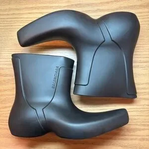 Chic matte black ankle boots by Balenciaga. Unique sculptural design.
