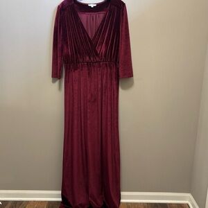 NWOT Baltic Born Sofia Velvet Maxi Dress Womens Size XXL Whimsigoth Holiday Burgundy Evening Party Cocktail Surplice Boho Minimalist Elegant Empire Waist Long