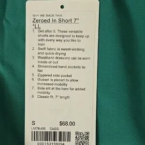 Lululemon Men's 7" Zeroed In Linerless Short Small Green. Worn once. EUC