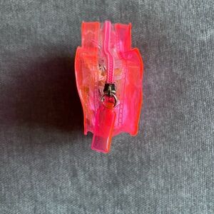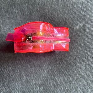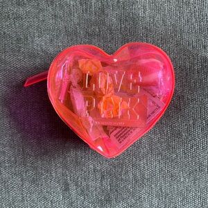 Vintage! Heart-shaped mini holder with 'LOVE PINK' text. Neon pink color. Compact and stylish. Great for pool, travel and to keep small items secure that zips up. Contents in bag not included.