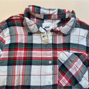 NWT Aerie Women’s Plaid Flannel Button Down Shirt – Red Green White – Size S