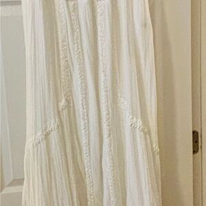Cute white Boho maxi dress or coverup . Features textured bodice. Flowy and stylish.