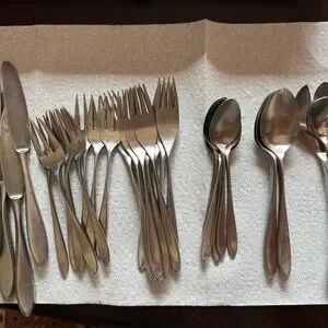 From West Germany, this MCM flatware is the Tradition pattern from Solingen, made of 18/8 stainless steel.