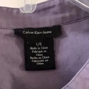 Vintage 90s cK Jeans Women's Purple Embroidered Button-Up Blouse, L