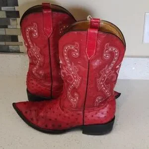 Vibrant red cowboy boots with intricate stitching. Perfect for a bold western look. usados en buenas condiciones C 8 B