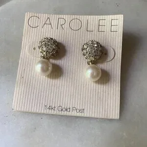 New on Card Carolee CZ & faux pearl dangle stud earrings