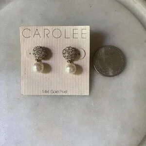 NWT Carolee CZ & glass pearl 14kt gold post pierced earrings coquette romantic