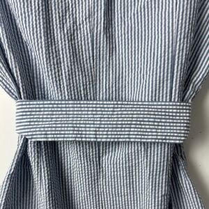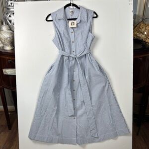 Anne Klein SEERSUCKER White&Blue Dress w/Pockets Self Tie NWT SZ 12 Classic