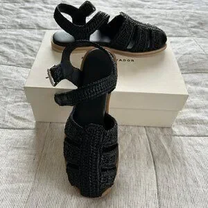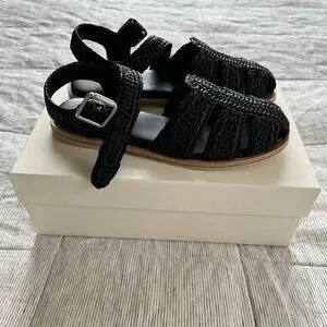FREDA SALVADOR Sera Fisherman sandal in black raffia, size 7, NEW in box