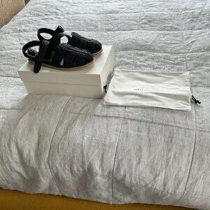 I purchased these from Freda Salvador, but have never had the chance to wear them. Brand-new, still in box. In a size 7. Includes dust bag. These sandals are selling out fast. From my smoke and pet-free home.