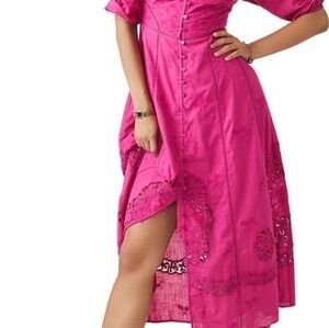 Free People Lisa Lace Midi Dress in Hollyhock Pink