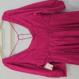 Chic fuchsia dress with delicate embroidery. Ideal for stylish outings.