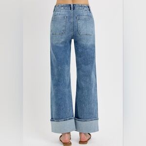 Risen HR Medium Wash Button Fly Patch Pocket Cuffed Wide Leg Jeans Various NEW