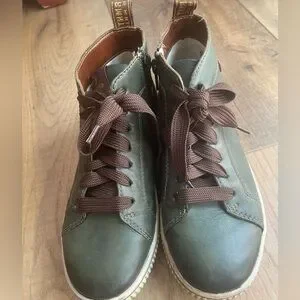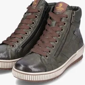 Stylish olive sneakers with brown laces. Features side zippers for easy wear. Perfect for casual outings. Remonte Maditta 72