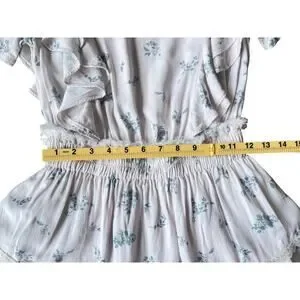Shabby Chic White Blue Floral Ruffle Mini Dress Cottagecore - Size XS