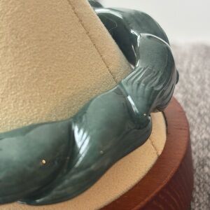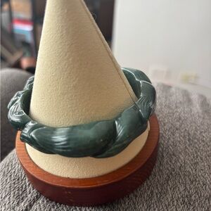 A symbol of duality, the nine-tailed fox can be both a benevolent protector and a mischievous trickster, often appearing as a beautiful woman to interact with humans. Grade A Jade bangle hand carved into a nine-tail fox. Over 64 mm in diameter. Natural stone. Certificate included.
