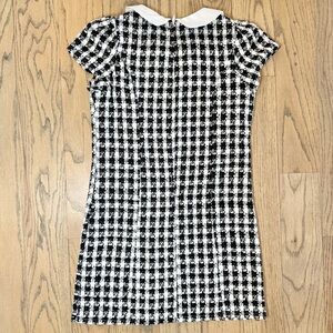 Never worn, like new. Elegant dress with pearl and gem details. Classic black and white design. Ideal for special occasions.