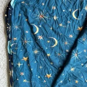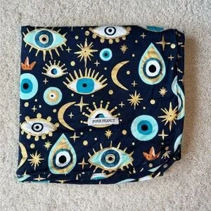 Posh Peanut Fiona evil eye print design. Blue and gold accents. Perfect for stylish outings. Patoo Blanket 40”x40”