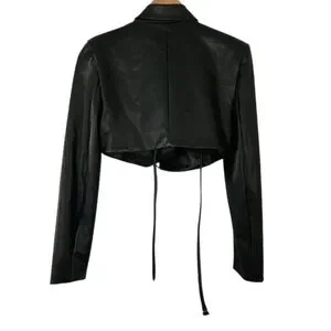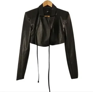 H:ours Alvina Black Cropped Faux Leather Blazer Jacket Small