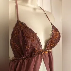 Victorias’s Secret Lingerie Top Medium And Lace G String Thong Maroon Baby Doll