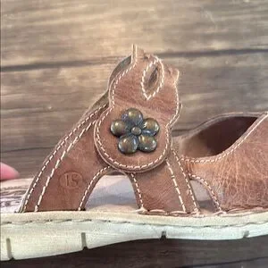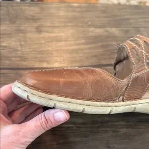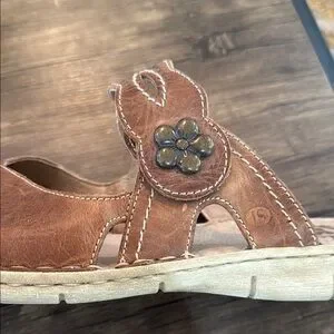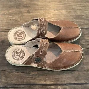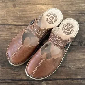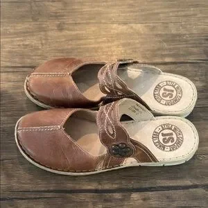 Discover the perfect blend of comfort and elegance with Josef Seibel's brown leather sandals. These slip-ons feature a classic moccasin-style design with a rounded toe and visible stitching, ideal for casual or business casual settings. Crafted from high-quality leather, they offer a rich, warm tone that complements any wardrobe. Enjoy the timeless appeal and reliable comfort of these versatile shoes. Good used condition. From a smoke free home.