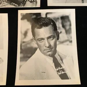 Included are 7 Black and White Portrait Photographs of Movie Stars from the 40's and 50's. Each one has the actors name written on the front - autographed? You be the judge!