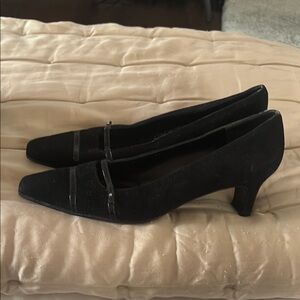 These Salvatore Ferragamo suede kitten heels feature a sleek, minimalist design in a solid black color, perfect for versatile styling. Ideal for casual or formal occasions, these 1.5” inch are super comfortable. Only worn a couple times and in perfect condition.
