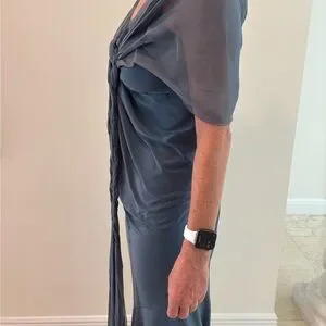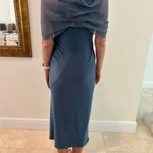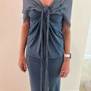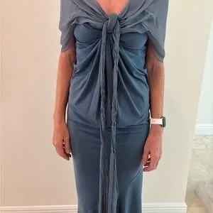 Rene Ruiz Blue Gray Ruched Gown