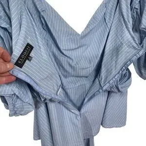 ELOQUII Women’s Blue and White Crisscross Draped Puff Sleeve Top