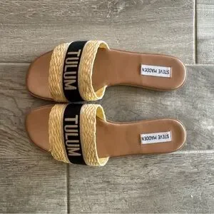 Steve Madden Knox Tulum Tan and Black Slide Sandals