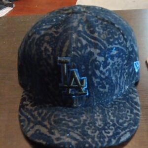 Navy blue fitted cap with New Era branding. Comfortable and stylish.