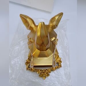 3D Gold Rhino Head Wall Art – Resin Animal Sculpture | Home Decor Accent