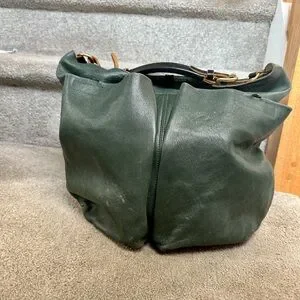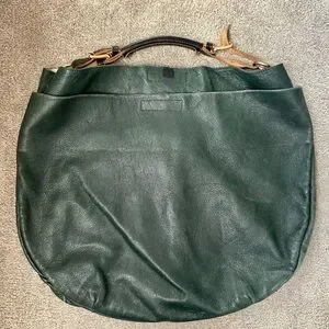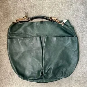 This green leather hobo bag combines a relaxed, slouchy design with a crescent-like shape, offering both style and versatility. Crafted from soft, supple leather, it features a matte finish and natural texture, making it perfect for everyday use. The bag's medium to large size ensures ample space for your essentials while maintaining a casual, elegant aesthetic.