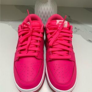 Nike Dunk low sneaker in an eye catching hyper pink w/white sole. Shoes are like new, only worn once.