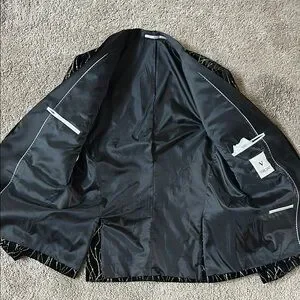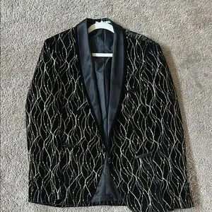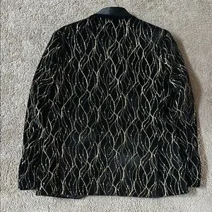 This sport coat features a striking black base adorned with a shimmering gold geometric pattern, offering a modern twist on classic tailoring. The elegant lapel collar and sophisticated design make it an ideal choice for formal events where you want to make a statement.