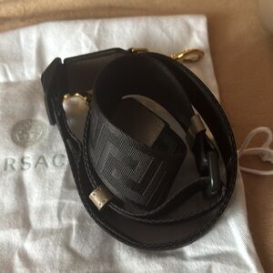 Versace crossbody bag with tag/identification card, generous crossbody strap, and dust bag. Used less than 5 times. Pocket in front big enough for phone, keys, and/or small wallet. Card slots on inside of the bag and space for all your essentials!