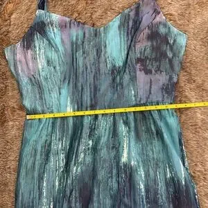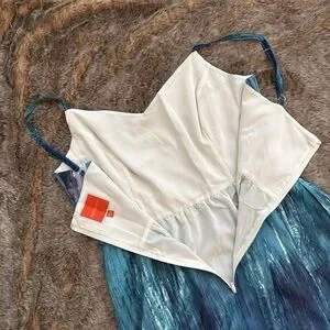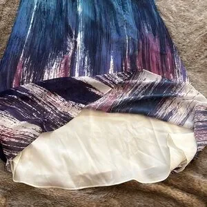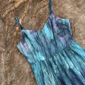 ModCloth Brushstroke to Conclusions watercolor maxi dress with adjustable spaghetti straps. Flowy fabric, side pockets, back sipper closure. Beautiful mixed blue and purple colors. Size large. A few horizontal snags in front bottom skirt fabric, not very noticeable when worn because of the print.