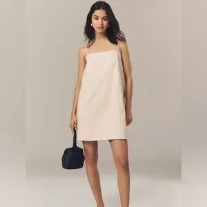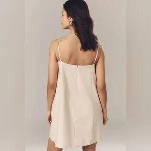 Anthropologie Mare Mare Linen Blend Square-Neck A-Line Mini Dress Beige XXS. One small pull in back where zipper is, see photos. Very light wear otherwise. Adjustable straps and a shift shape make this an easy piece fitting many shapes and sizes - I’d say this would fit a true xxs-s.