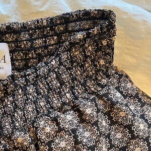 MISA Ananda tiered ruffle maxi skirt smocked elastic waist metallic print small