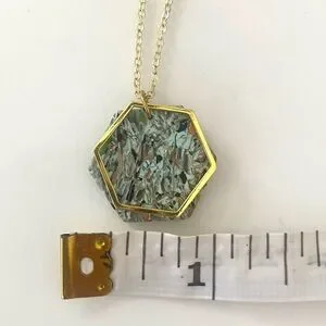 Hand made by me. Pendant is slightly under 1 inch. The gold charm and chain is gold plated brass. Nickel free and hypoallergenic. Recommended not to wear in water or sleep in. Chain measures 18 inches.
