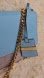 This stylish clutch features a sophisticated blue and gray design, complemented by a luxurious gold strap.
