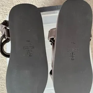 Brunello Cucinelli Monili Leather Sandals. Dark Brown, Women Size 9 1/2. Never Worn. Straps & Velcro Closure At Ankles. Perfect for casual elegance. A Must Have!