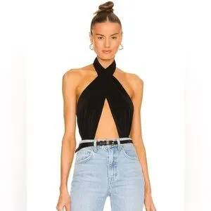 Norma Kamali Cross Halter Bodysuit in Black