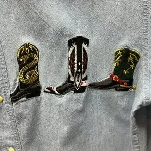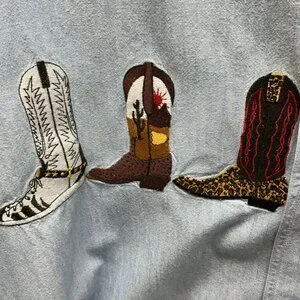 It has 3 embroidered boots on one side and 3 on the other
