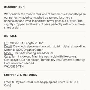 Embrace a relaxed vibe with the Faherty Blue Sleeveless Boxy Muscle Tee. This top features a comfortable, boxy fit and a sleeveless design, perfect for casual outings. Crafted with a soft, sunwashed texture, it offers both style and comfort in a versatile blue hue. Smoke free